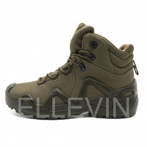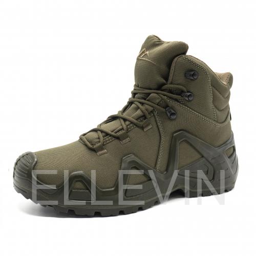 Мужские трекинговые ботинки арт. 1002 представлены в двух цветах - "Olive Green" и "КМФ". Это облегченная, более дешевая версия всеми полюбившейся линейки Е-РRО. Верх изделия выполнен из высокопрочной ткани OXFORD. Однослойная подошва из ПУ обладает амортизирующими свойствами. Подлитой носок обеспечивает защиту от повреждений. Защитный рант с выборками для облегчения веса проходит по всему периметру и создает узнаваемый образ. Кроме основных функций, рант дает дополнительное сцепление с поверхностью, например, при движении вдоль склона. Высота среднего ботинка 14.5 см, этого хватает для отличной фиксации голеностопа. Все детали прошиты двойным швом, все швы сделаны крайне аккуратно. На пятке есть петелька, облегчающая надевание. Язычок с защитным клапаном исключает просачивание воды и попадание посторонних предметов внутрь.