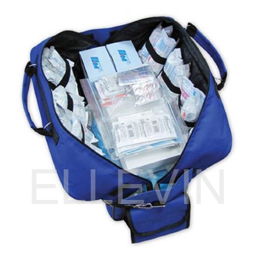 Аптечка помещается в большой компактной сумке. Размеры: 65х34,5х24 см. Несмотря на большой объем медикаментов, сумка имеет удобную обтекаемую форму, благодаря чему не создает неудобств при ношении. Ее удобно носить как в руке, так и на плече, в любых полевых и походных условиях. Мягкий влагостойкий материал обеспечивает сохранность содержимого в сухом состоянии даже при влажной погоде или при преодолении водных препятствий в процессе поиска пострадавших в любой местности