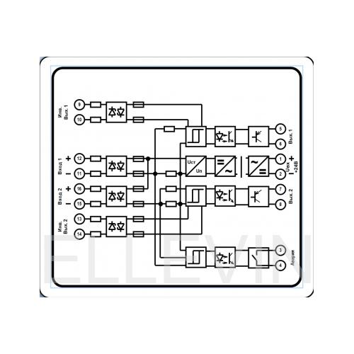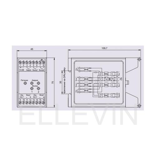 Барьер содержит два независимых канала. Каждый канал включает в себя входную цепь для подключения датчика положения и выходной коммутирующий элемент.