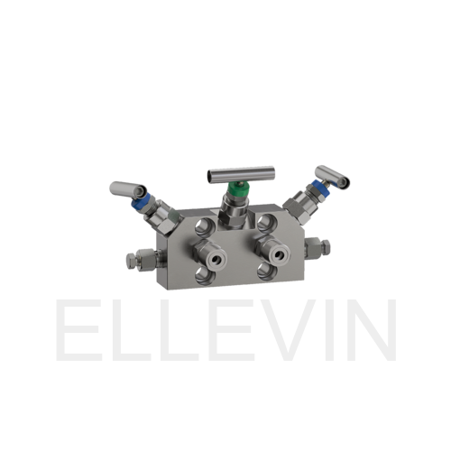 Блок трёхвентильный БВ-310 – два измерительных канала соединения с процессом, и на каждом канале по одному вентилю, перекрывающему канал от датчика к процессу. Третий (средний) вентиль объединяет два канала между собой и служит для корректировки нуля на датчике дифференциального давления. Дренажные каналы отсутствуют.