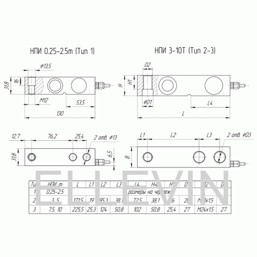 Рабочий коэффициент передачи, мВ/В 2.0±0.002(0.25-0.3т); 3.0±0.003(0.5-10т) Предельно допустимая нагрузка, % 150