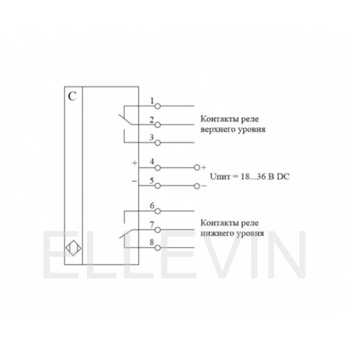 Тип выходного сигнала: Два реле для программирования уровней (Питание 24 В DC. Два выходных реле (верхнего и нижнего уровня) и аналоговый выход 10-30 В)