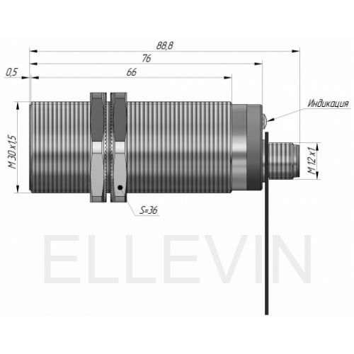 Емкостный датчик бесконтактный ВБЕ-М30-73Р-1113-СА в цилиндрическом корпусе из никелированной латуни Ø30 мм, в общепромышленном исполнении. Может использоваться в качестве датчика положения для определения наличия/отсутствия практически любого объекта воздействия, независимо от материала, исполнения, а также в качестве датчика предельного уровня для организации контроля уровня сыпучих и жидких материалов в резервуарах из диэлектрика.