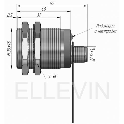 Индуктивный датчик ВБИ-М30-34Р-1123-СА.51 в цилиндрическом корпусе из никелированной латуни Ø30 мм, в общепромышленном исполнении. Предназначен для надежного обнаружения металлических предметов бесконтактным способом.