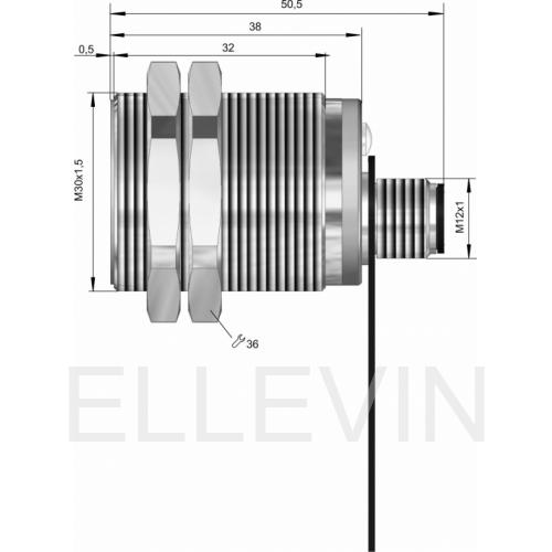 Индуктивный датчик ВБИ-М30-34Р-1111-С в цилиндрическом корпусе из никелированной латуни Ø30 мм, в общепромышленном исполнении. Предназначен для надежного обнаружения металлических предметов бесконтактным способом.