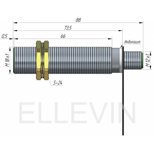 Индуктивный датчик ВБИ-М18-76Р-1132-С.6 в цилиндрическом корпусе из никелированной латуни Ø18 мм, в общепромышленном высокотемпературном исполнении. Предназначен для надежного обнаружения металлических предметов бесконтактным способом.