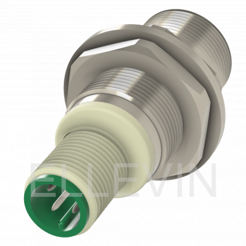Индуктивный датчик ВБИ-М18-34Р-1113-С в цилиндрическом корпусе из никелированной латуни Ø18 мм, в общепромышленном исполнении. Предназначен для надежного обнаружения металлических предметов бесконтактным способом.