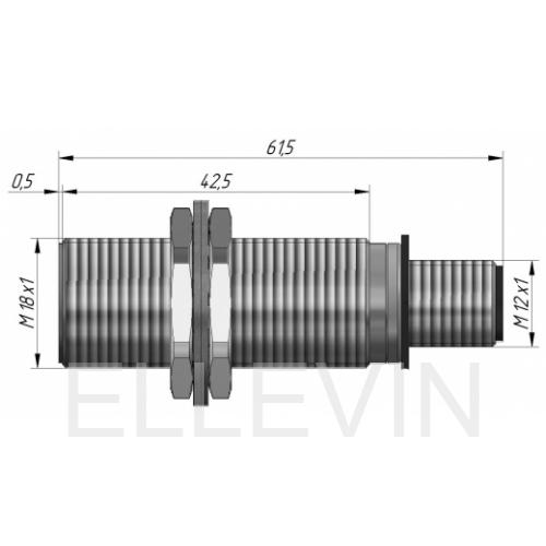 Индуктивный датчик ВБИ-М18-46Р-1113-С в цилиндрическом корпусе из никелированной латуни Ø18 мм, в общепромышленном исполнении. Предназначен для надежного обнаружения металлических предметов бесконтактным способом.