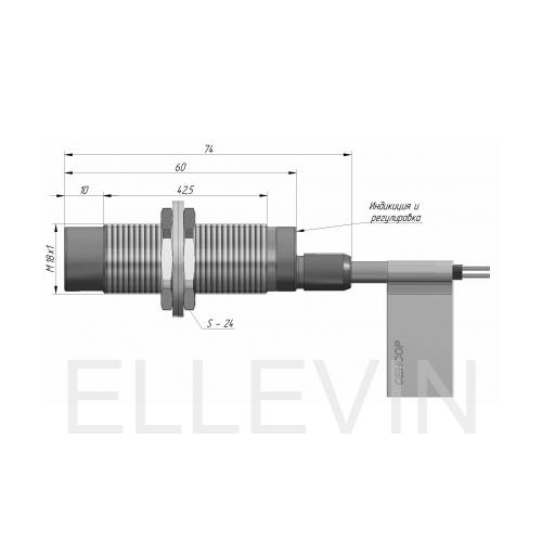 Индуктивный датчик ВБИ-М18-56В-2113-СА.51 в цилиндрическом корпусе из никелированной латуни Ø18 мм, в общепромышленном исполнении. Предназначен для надежного обнаружения металлических предметов бесконтактным способом.