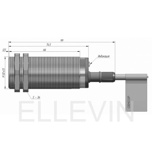 Индуктивный датчик ВБИ-М30-76С-1111-С в цилиндрическом корпусе из никелированной латуни Ø30 мм, в общепромышленном исполнении. Предназначен для надежного обнаружения металлических предметов бесконтактным способом.