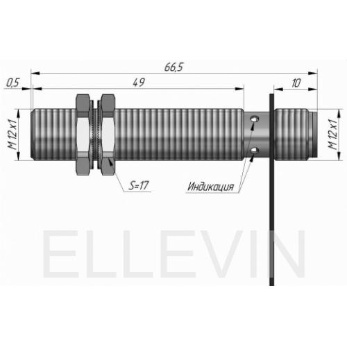 Индуктивный датчик ВБИ-М12-60Р-1111-С в цилиндрическом корпусе из никелированной латуни Ø12 мм, в общепромышленном исполнении. Предназначен для надежного обнаружения металлических предметов бесконтактным способом.