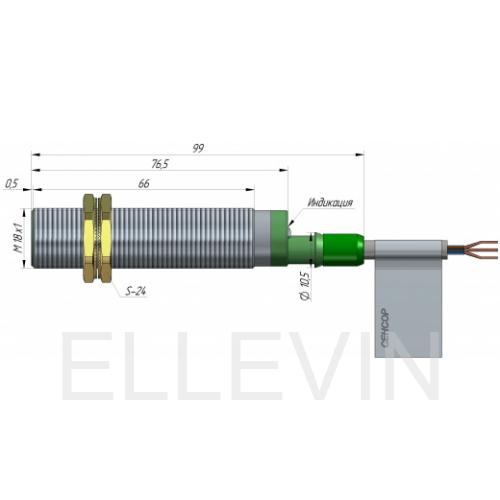 Индуктивный датчик ВБИ-М18-76C-1113-СА.51 в цилиндрическом корпусе из никелированной латуни Ø18 мм, в общепромышленном исполнении. Предназначен для надежного обнаружения металлических предметов бесконтактным способом.