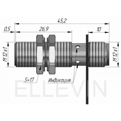 Индуктивный датчик ВБИ-М12-34Р-1111-С.51 в цилиндрическом корпусе из никелированной латуни Ø12 мм, в общепромышленном исполнении. Предназначен для надежного обнаружения металлических предметов бесконтактным способом.
