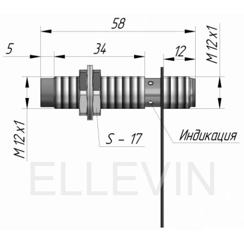 Индуктивный датчик ВБИ-М12-39Р-2113-С в цилиндрическом корпусе из никелированной латуни Ø12 мм, в общепромышленном исполнении. Предназначен для надежного обнаружения металлических предметов бесконтактным способом.