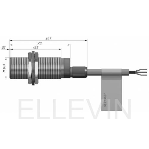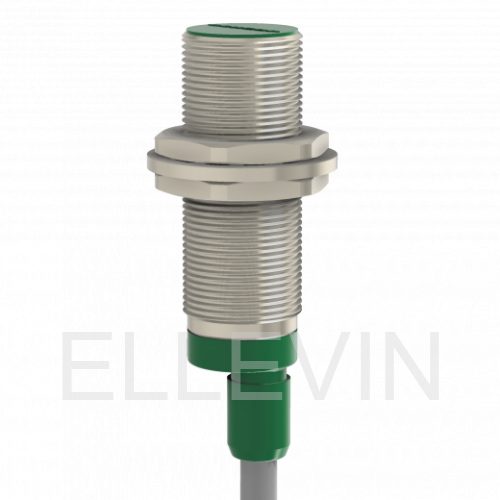 Индуктивный датчик ВБИ-М18-46В-1113-С в цилиндрическом корпусе из никелированной латуни Ø18 мм, в общепромышленном исполнении. Предназначен для надежного обнаружения металлических предметов бесконтактным способом.