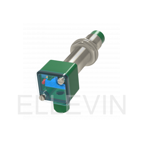 Индуктивный датчик ВБИ-М18-86К-2113-С в цилиндрическом корпусе из никелированной латуни Ø18 мм, в общепромышленном исполнении. Предназначен для надежного обнаружения металлических предметов бесконтактным способом.