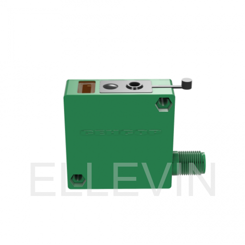 Диффузный датчик (тип-D с отражением от объекта) содержит источник света и приемник в одном общем корпусе. Линза источника света формирует световой луч, который с увеличением расстояния увеличивается в ширину и уменьшается в интенсивности.