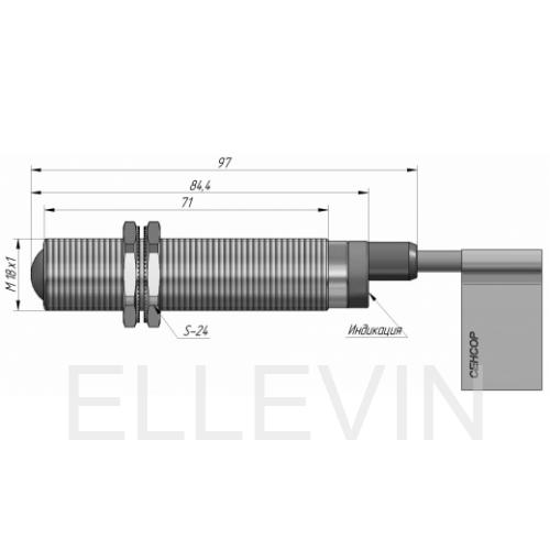 Датчик барьерного типа ВБО-М18-76В-9100-Н (излучатель) в цилиндрическом корпусе из никелированной латуни Ø18 мм, в общепромышленном исполнении предназначен для промышленной автоматизации производственных процессов.