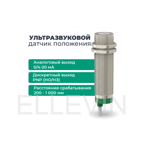 Ультразвуковой датчик с аналоговым выходом ДПУ-М30-100У-4110-СА в цилиндрическом корпусе из никелированной латуни Ø30 мм, в общепромышленном исполнении. Предназначен для контроля уровня жидких и сыпучих веществ, контроля положения, позиционирования и обнаружения прозрачных объектов, объектов разных форм и цветов.