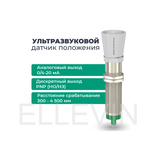 Ультразвуковой датчик с аналоговым выходом ДПУ-М30-100У-5110-СА в цилиндрическом корпусе из никелированной латуни Ø30 мм, в общепромышленном исполнении. Предназначен для контроля уровня жидких и сыпучих веществ, контроля положения, позиционирования и обнаружения прозрачных объектов, объектов разных форм и цветов.