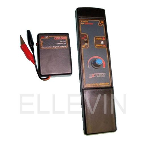 Комплект детектора состоит из двух устройств: Приёмника, работающего на частотах 50 Гц или 1500 Гц Генератора сигналов GS1500, вырабатывающего в зависимости от питания переменное напряжение до 190 В частотой 1500 Гц. Приёмник является полностью автономным устройством и с его помощью можно производить трассировку кабелей, поиск проводки или места её обрыва в промышленных сетях 220в/50Гц. Результат поиска напрямую зависит от глубины залегания провода и материала стены, самым тяжёлым из которых является бетон. С генератором возможен поиск, если проводка обесточена. Лучшего результата, используя генератор можно достичь в определении трассировки прохождения открытых или слабо защищённых кабелей, а так же отдельных проводников в многокабельной силовой сети или слаботочной проводке (охрана, пожарка…). Генератор не боится короткого замыкания