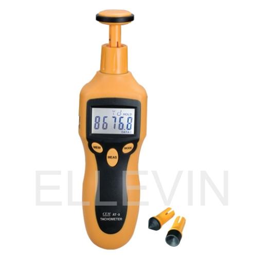 Цифровой тахометр АТ-8 (контактно-бесконтактный) предназначен для измерения скорости вращения, определения числа оборотов. Фототахометр использует центральный процессор, фотоэлектрический приемник и лазер.