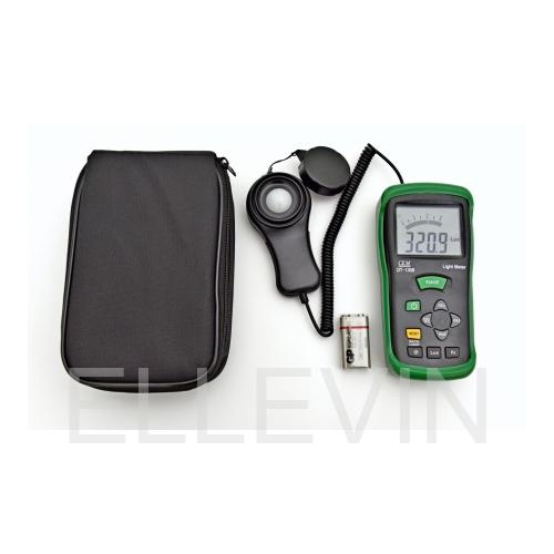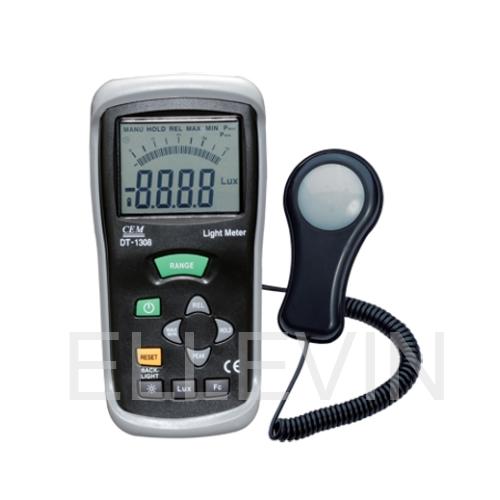 Имеритель освещенности DT-1308 спроектирован для измерения освещенности в ед. люкс или фут-кандела. Спектральная чувствительность прибора соответствует относительной спектральной световой эффективности C.I.E. Измеритель освещенности (люксметр) CEM DT-1308 полностью скорректирован по косинусу от ошибки при измерении освещённости, создаваемой светом, падающим под углом. В качестве светочувствительного датчика в этом приборе используется высокостабильный, с продолжительным сроком службы кремниевый фотодиод со специальным корригирующим фильтром.