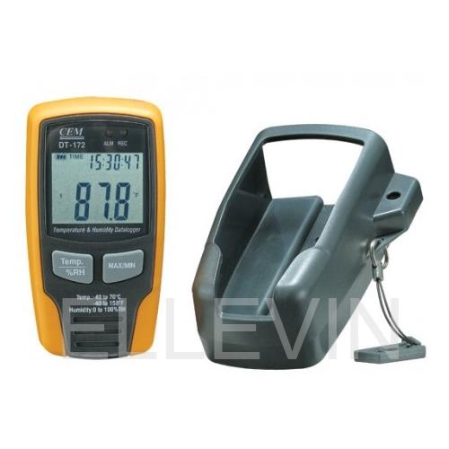 DT-172 Регистратор температуры и влажности может использоваться для мониторинга влажности и температуры в теплицах, складах, кабинах самолетов, изотермических автомобилях, контейнерах, музеях и оборудование для вентиляции и кондиционирования воздуха. Прибор производит измерения и сохраняет до 16350 значений относительной влажности и 16350 значений температуры в диапазоне от 0 до 100 % RH и от -40 до +70 °C. LCD дисплей может отображать максимальное и минимальное значения, текущие значения, знак тревоги.