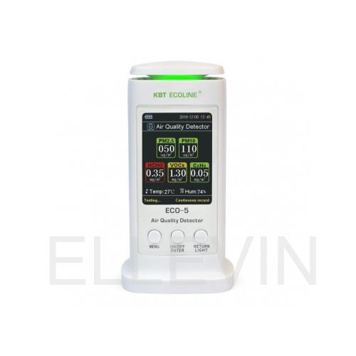 Контроль за состоянием воздушной среды в промышленности и на производстве осуществляется специальными газоанализаторами. Анализатор ECO-5 предназначен для выявления содержания в воздухе следующих примесей: пыль дисперсная (РМ), углекислый газ СО2, легкоиспаряемые органические соединения. Также прибор измеряет температуру и влажность воздуха в помещении. Данные о состоянии окружающей среды выводятся на цветной дисплей высокого разрешения и могут быть представлены в виде графика или таблицы. Внутренняя память анализатора ECO-5 позволяет записывать ранее проведенные изменения, а сам прибор может находиться в режиме непрерывного наблюдения.