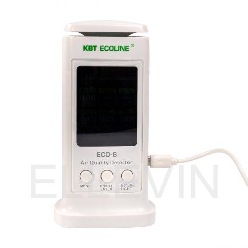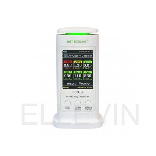 Контроль за состоянием воздушной среды в промышленности и на производстве осуществляется специальными газоанализаторами. Анализатор ECO-6 предназначен для выявления содержания в воздухе следующих примесей: пыль дисперсная (РМ), углекислый газ СО2, легкоиспаряемые органические соединения. Также прибор измеряет температуру и влажность воздуха в помещении. Данные о состоянии окружающей среды выводятся на цветной дисплей высокого разрешения и могут быть представлены в виде графика или таблицы. Внутренняя память анализатора ECO-6 позволяет записывать ранее проведенные изменения, а сам прибор может находиться в режиме непрерывного наблюдения.