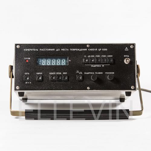 Данный прибор представляет собой прибор определяющий расстояние до точки повреждения, называемой «заплывающим» пробоем, а также до участков характеризующихся низким сопротивлением изоляции высоковольтных силовых электрокабелей ААБ, АСБ, ОСБ, СБ со значением номинального напряжения (U) 6-22 кВ, выполненных с использованием бумажно-масляной изоляции и при расстоянии до поврежденного места не больше 40 км. Измеритель расстояния до места повреждения кабеля ЦР0200 имеет следующие составляющие: измеритель, устройства присоединения по напряжению, по току. Устройство подключения по напряжению служит для подсоединения измерителя к силовому кабелю, находящемуся при испытаниях под высоким U. Максимальная величина U, которое подается на устройство соединения по напряжению, составляет 22 кВ. Использование высоковольтного конденсатора позволяет подавать U до 50 кВ. В этой ситуации конденсатор емкостью около 500 пФ, включается в цепь между внутренним электроходом устройства присоединения по напряжению и жилой тестируемого кабеля. Присоединения по току используется для подключения измерителя к кабелю, через который при испытаниях течет ток колебательного процесса, имеющий большую величину. U на выходе устройства составляет не меньше 0,8 мВ, когда протекает синусоидальный ток значением 10А.
