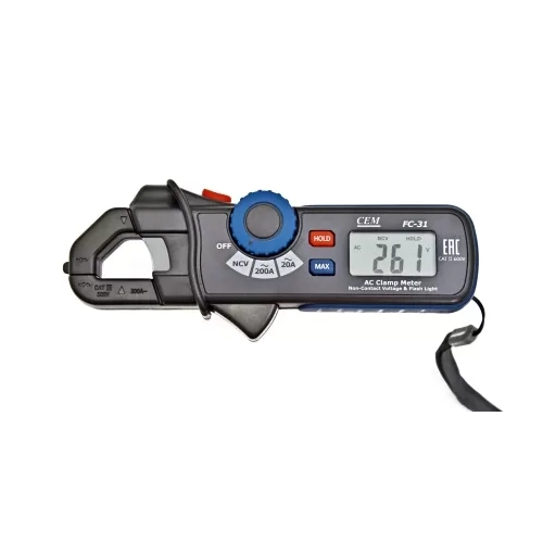 FC-31 Мини токовые клещи 3 в 1, предназначены для измерения переменного тока до 200А. Токовые клещи FC-31 очень надёжны, удобно лежат в руке и имеют большой дисплей с подсветкой. Реализована функция бесконтактного определения переменного напряжения, о наличии которого сообщит световой индикатор. Для удобства работы в слабо освещенных местах встроен фонарик.