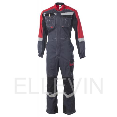 Комбинезон "ФОРМУЛА" изготовлен в соответствии с ГОСТ. Изделие закрывается на молнию, закрытую ветрозащитной планкой на липучку и оснащено фигурным воротником-стойкой. В области подмышечных впадин находится вентиляционные отверстия из сетки. На модели расположены верхние накладные фигурные карманы с фигурными клапанами на липучку. Изделие оснащено держателем-полукольца для бейджа. Эластичной резинка по талии спинки обеспечивает комфортную посадку. На комбинезоне расположены задние фигурные накладные карманы, карманы под инструменты и накладной карманом с фигурным клапаном на липучку на боковом шве. Усилительными накладками в области коленей и по шаговому шву обеспечивают дополнительную защиту. Для безопасной работы сотрудник в комбинезоне "ФОРМУЛА" предусмотрена световозвращающая лента шириной 50 мм.