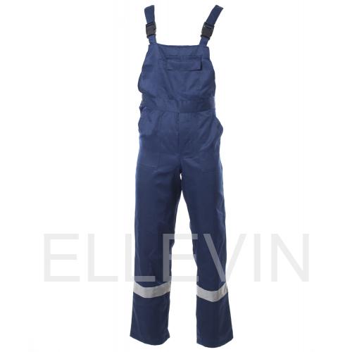 Полукомбинезон «СТАНДАРТ» С СОП изготовлен в соответствии с ГОСТ. На изделии расположены накладные карманы с боковым входом на передних половинках. Гульфик застегивается и в правом боковом шве на пуговицы. Нагрудный накладной карман с клапаном, с делением под ручку. На задней половинке полукомбинезона размещен накладной карман под инструменты. Эластичная резинка по талии спинки фиксирует посадку. Бретели на пластиковых застежках (фастексах) регулируются по длине за счет эластичной резинки. Для безопасной работы сотрудника в местах с плохим освещением на костюме «СТАНДАРТ» предусмотрена светоотражающая полоса 50 мм.