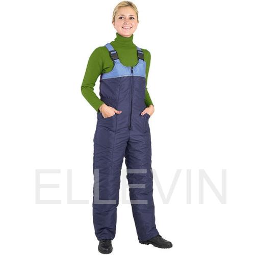 Полукомбинезон прямого силуэта , с притачным лифом и спинкой , с бретелями . Центральная застежка – на двух замковую молнию . Ширина изделия по линии талии регулируется втачной резинкой по спинке . Боковые карманы – внутренние , с наклонной линией входа в карман. На левой стороне лифа изделия – объемный накладной карман с клапаном на кнопке