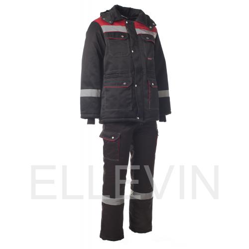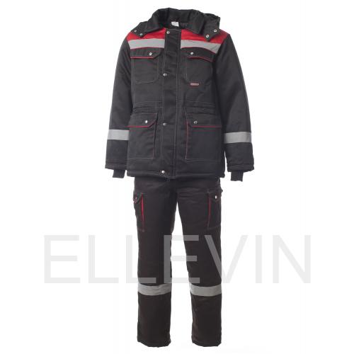 Костюм "АНТЕЙ" изготовлен в соответствии с ГОСТ и включает в себя два предмета: куртка / полукомбинезон. Он оснащен утепленной ветрозащитной планкой с застежкой на кнопки, которая обеспечивает дополнительную защиту от ветра. В костюме используется контрастная отстрочка. На модели расположены накладные карманы с клапанами, которые закрываются на кнопку. Воротник отложный, капюшон утепленный и съемный. Ширина изделия регулируется по талии куртки. Полукомбинезон с центральной застежкой на молнию. На спине вдоль линии талии есть эластичная резинка. Для безопасной работы сотрудника в местах с плохим освещением на костюме «Антей» предусмотрена световозвращающая полоса шириной 50 мм.