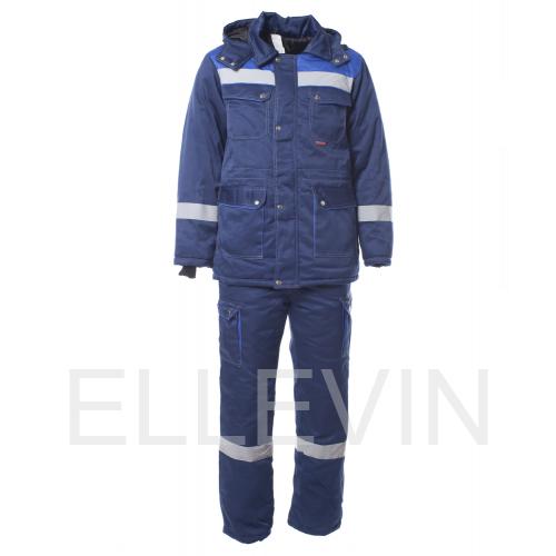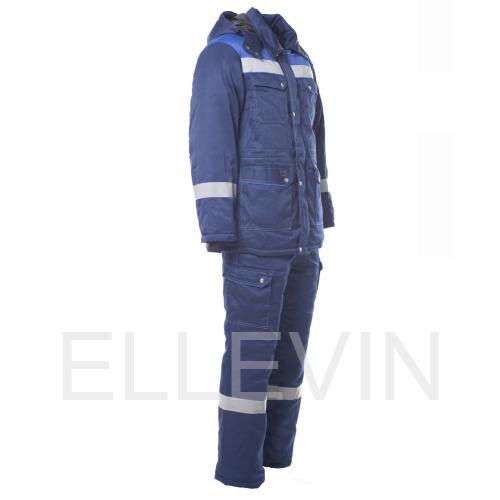Костюм "АНТЕЙ" изготовлен в соответствии с ГОСТ и включает в себя два предмета: куртка / полукомбинезон. Он оснащен утепленной ветрозащитной планкой с застежкой на кнопки, которая обеспечивает дополнительную защиту от ветра. В костюме используется контрастная отстрочка. На модели расположены накладные карманы с клапанами, которые закрываются на кнопку. Воротник отложный, капюшон утепленный и съемный. Ширина изделия регулируется по талии куртки. Полукомбинезон с центральной застежкой на молнию. На спине вдоль линии талии есть эластичная резинка. Для безопасной работы сотрудника в местах с плохим освещением на костюме «Антей» предусмотрена световозвращающая полоса шириной 50 мм.