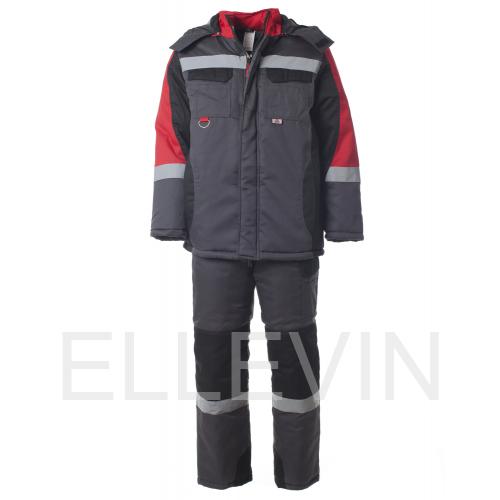 Костюм "ФОРМУЛА" изготовлен в соответствии с ГОСТ и включает в себя два предмета: куртка / полукомбинезон. Изделие закрывается на ветрозащитную планку с застежкой на ленту-контакт. Капюшон на куртке утепленный и съемный. Воротник-стойка имеет флисовую подкладку для дополнительного тепла. Ширина куртки регулируется по талии, линия низ а изделия фигурная. Центральная застежка утепленного полукомбинезона – молния. Эластичная резинка по талии спинки позволяет фиксировать посадку. В области колен по низу шаговых швов находятся усилительные накладки. В полукомбинезоне расположены различные многофункциональные карманы для хранения мелочей. Для безопасной работы сотрудника в местах с плохим освещением на костюме «ФОРМУЛА» предусмотрена светоотражающая полоса шириной 50 мм.