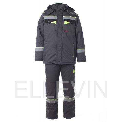 Костюм утепленный "КОРВЕТ" изготовлен в соответствии с ГОСТ и включает в себя 2 предмета: куртка / брюки. Центральная застёжка - молния "металл №5". На куртке ветрозащитная планка с застежкой на липучки и кнопки. На модели расположены нагрудные накладные карманы и карманы в рельефных швах полочек. Ширина изделия регулируется по низу. Костюм оснащен утепленным съемным капюшоном с козырьком. На брюках съёмные бретели, широкий утепленный пояс закрывается на пуговицы. На изделии расположены многофункциональные карманы для хранения мелочей. Гульфик закрывается на молнию. В области колен усилительные накладки. В костюме присутствуют яркие декоративные элементы. В области колен усилительные накладки. Для безопасной работы сотрудника в местах с плохим освещением на костюме «КОРВЕТ» с СОП предусмотрена световозвращающая полоса шириной 50 мм.