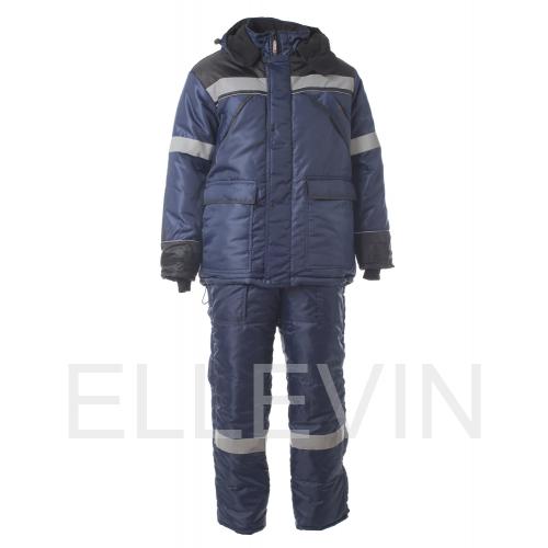 ТКАНЬ ВЕРХА: «Оксфорд 240» с полиуретановым водонепроницаемым ветрозащитным покрытием (100% ПЭ, пл. 95±10 гр./м²). ТКАНЬ ПОДКЛАДОЧНАЯ: «Тафета 190» (100% ПЭ, пл. 55±10 гр./м2 ). УТЕПЛИТЕЛЬ: Синтепон - 150 гр./м². в куртке 3 слоя, в полукомбинезоне 2 слоя.