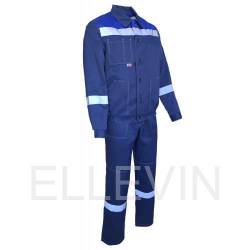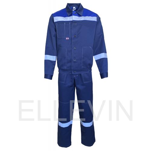 Костюм "ЕНИСЕЙ" изготовлен в соответствии с ГОСТ и включает 2 предмета: куртка, полукомбинезон. На изделии расположены нагрудный накладной карман на правой полочке, нижние накладные карманы с косым входом. На рукавах манжеты, фиксирующиеся на пуговицу. Усилительные накладки в области локтей и коленей обеспечивают дополнительную защиту. Куртка на поясе с частичной стяжкой на эластичную резинку. Полукомбинезон оснащен нагрудным карманом с клапаном для удобного размещения предметов первой необходимости. Гульфик застёгивается на молнию, в правом боковом шве на пуговицы. Эластичная резинка по спинке фиксирует посадку. Бретели на пластиковых застежках (фастексах), регулируются по длине за счет эластичной резинки. Для безопасной работы сотрудника в местах с плохим освещением на костюме «ЕНИСЕЙ» предусмотрена светоотражающая лента шириной 50 мм. На костюме контрастная отстрочка.