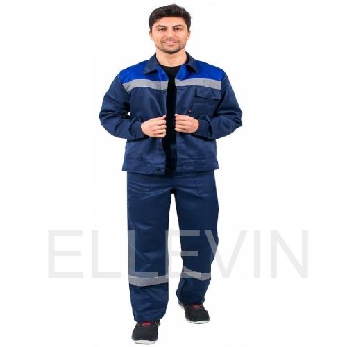Состоит из куртки и брюк . Куртка с притачным поясом , на «бочках» пояса для регулировки объема втачана резинка. Центральная застежка - на пуговицы . Один верхний и два нижних накладные карманы. Рукава втачные с манжетами на пуговицах. Кокетки куртки выполнены из контрастной ткани . По линиям кокетки спинки и полочек настрочена СОП 50 мм .