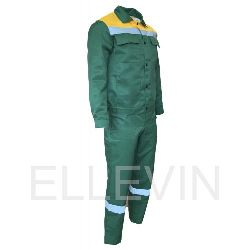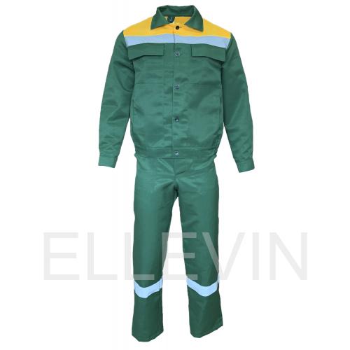 Костюм "ОПТИМАЛ" изготовлен в соответствии с ГОСТ и включает 2 предмета: куртка, полукомбинезон. Костюм отделан контрастной отстрочкой. На изделии расположены нагрудные карманы с клапанами и нижними карманами в рельефе полочек. Модель куртки-укороченная на поясе с частичной стяжкой на эластичную резинку. Полукомбинезон оснащен различными многофункциональными карманами для хранения мелочей. Эластичная резинка по талии спинки фиксирует посадку. Гульфик застегивается на молнию, в правом боковом шве на пуговицы. Бретели на пластиковых застежках (фастексах), регулируются по длине за счет эластичной резинки. Для безопасной работы сотрудника в местах с плохим освещением на костюме «ОПТИМАЛ» предусмотрена световозвращающая лента шириной 50 мм.