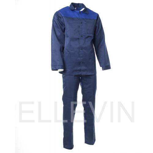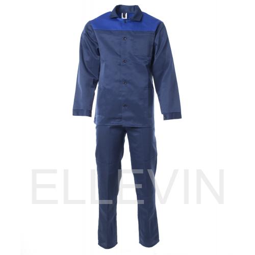 Костюм "СТАНДАРТ" изготовлен в соответствии с ГОСТ и включает 2 предмета: куртка, брюки. Модель куртки- удлиненная с застежкой на пуговицы. На изделии расположены накладной нагрудный карман с клапаном, нижние накладные карманы, на брюках накладные карманы на передних половинках. Гульфик застегивается на пуговицы. Усилительные накладки в области локтей и коленей обеспечивают дополнительную защиту.