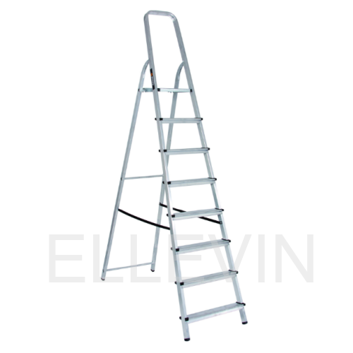 Корпус изготовлен из алюминия, что облегчает транспортировку. Односекционная модель с 8-ю широкими ступенями с рифленой поверхностью и рабочей площадкой. Чтобы стремянка не скользила, на опорах оборудованы заглушки. Также есть дуга безопасности. В сложенном состоянии модель очень компактна и занимает мало места.