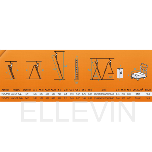 Лестница алюминиевая Лайт ВИХРЬ ЛА 3х9