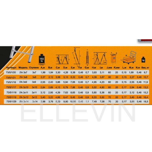 Корпус с антикоррозийным покрытием, изготовлен из алюминия. Благодаря пластиковым наконечникам ножек лестница не скользит по поверхности. Модель компактная, удобно хранить благодаря механизму трансформации. Поперечная траверса надежно фиксирует лестницу на поверхности.