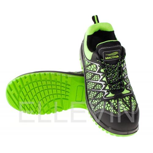 Кроссовки «МИСТРАЛЬ НЕОН» выполнены из дышащего водоотталкивающего трикотажного материала с накладками из ТПУ для дополнительной прочности и защиты. Подкладка кроссовок выполнена из текстильного воздухопроницаемого полотна с крупной ячейкой, что обеспечивает хорошую вентиляцию и комфорт. Подносок кроссовок укреплен и изготовлен из поликарбонатного материала (Мун 200 Дж) для защиты ноги. Подошва кроссовок двуслойная, выполнена из полиуретана и термополиуретана (ПУ-ТПУ) для комбинации комфорта и прочности. Стелька кроссовок антипрокольная, выдерживает нагрузку до 1200Н и обеспечивает защиту от проникновения острых предметов. Для безопасной работы сотрудника в местах с плохим освещением на кроссовках «МИСТРАЛЬ НЕОН» расположены световозвращающие элементы.