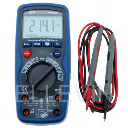 DT-9969 профессиональный цифровой мультиметр в двойном пластиковом водонепроницаемом корпусе со степенью защиты IP67. Мультиметр измеряет среднеквадратичное значение переменного напряжения и тока – True RMS Передача результатов на PC и смартфон по Bluetooth, Meterbox (приложение для Android)