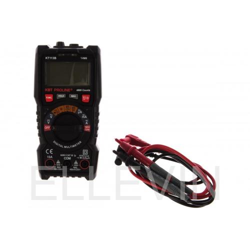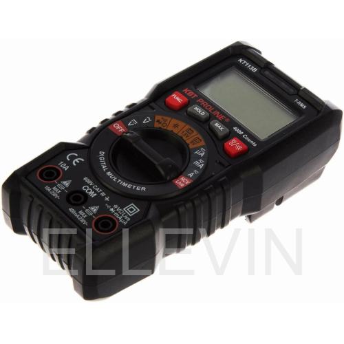 В мультиметрах от КВТ серии Proline используется оригинальный метод измерения True RMS, основанный на среднеквадратичном вычислении значения силы тока или напряжения. В секунду происходит 3 измерения. Модель KT113B может измерять постоянный и переменный ток в широком диапазоне, при этом прибор сам меняет диапазон измерений для получения верного результата. Переменное напряжение может определяться бесконтаткным способом. Диапазон измерения постоянного/переменного тока – 600 мкА-10А, постоянного/переменного напряжения – 400 мВ-600 В, сопротивление от 400 Ом до 60 МОм. Измерительные щупы идут в комплекте с устройством.
